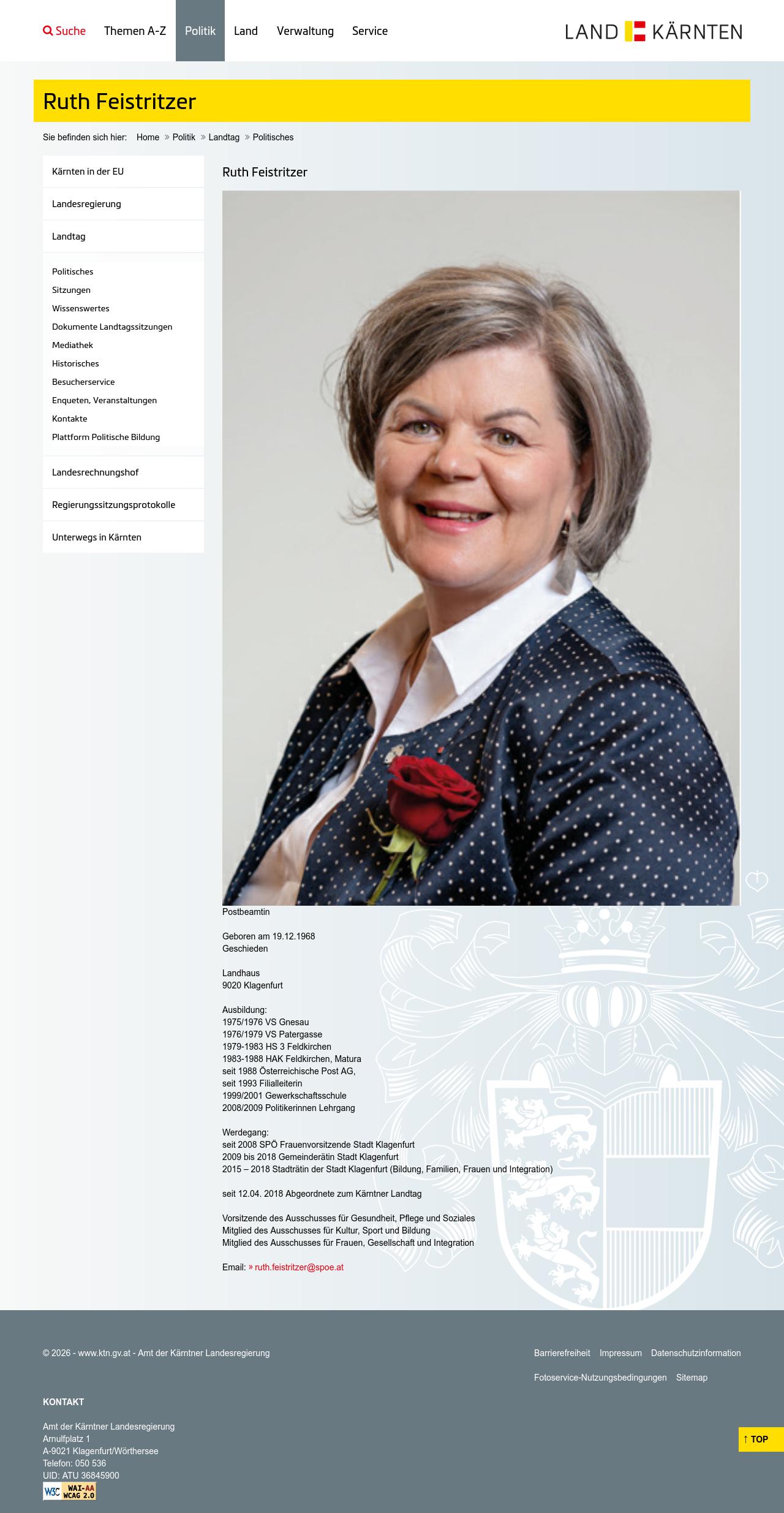 Quelle: Persönliche Seite; LTG K (Zugriff: 26.01.2026) Screenshot/Dokument: www.ktn.gv.at_2026-01-26_6127.jpg