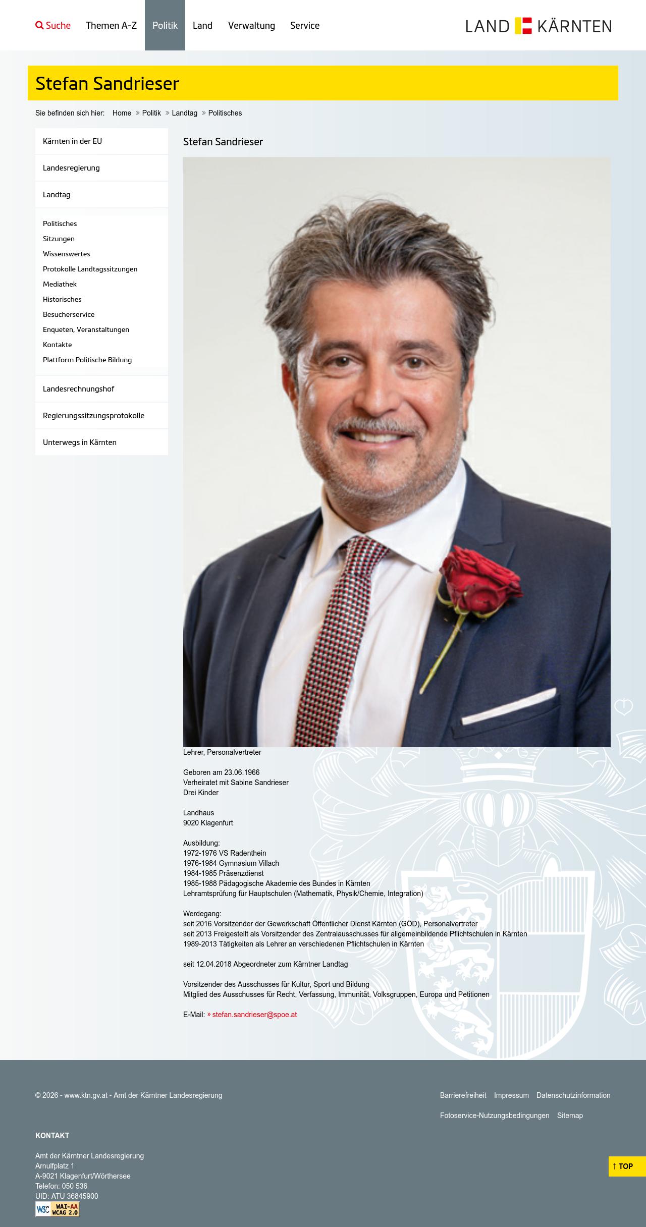 Quelle: Persönliche Seite; LT Kärnten (Zugriff: 02.02.2023) Screenshot/Dokument: screencapture-ktn-gv-at-politik-landtag-politisches-spoe-stefan-sandrieser-2023-02-02-11_05_18.jpg