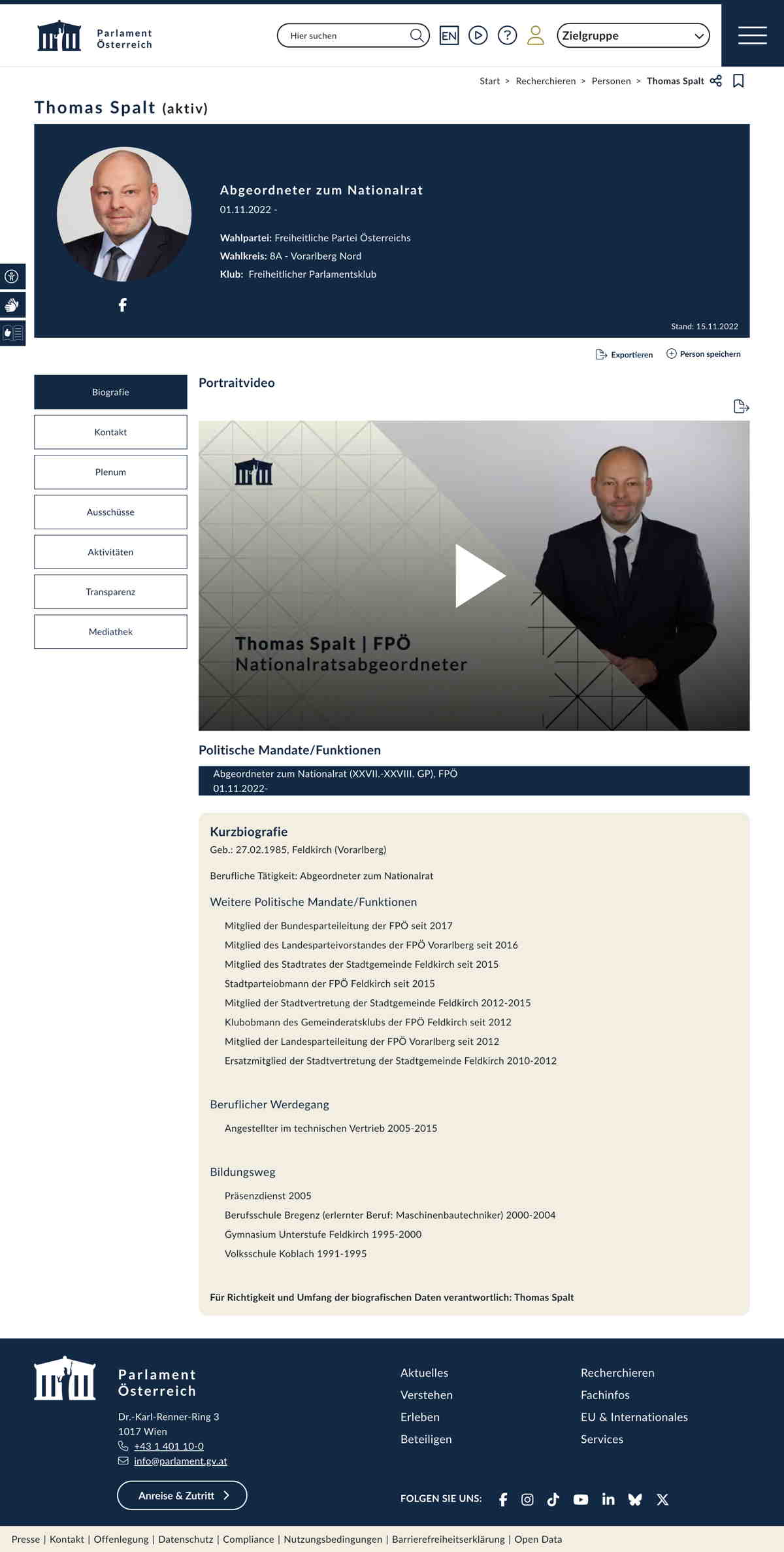 Quelle: Persönliche Seite; Parlament (Zugriff: 07.11.2022) Screenshot/Dokument: www.parlament.gv.at_2022-11-07_5254.jpg